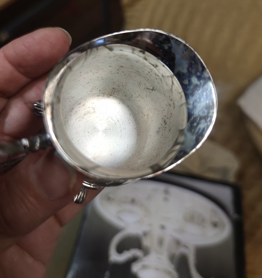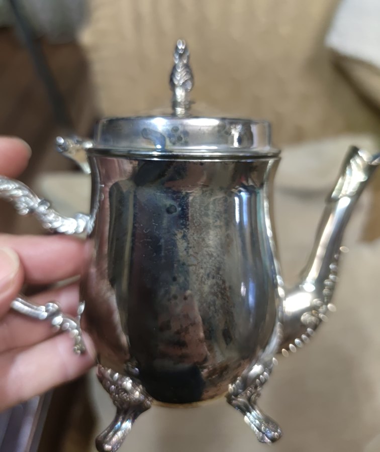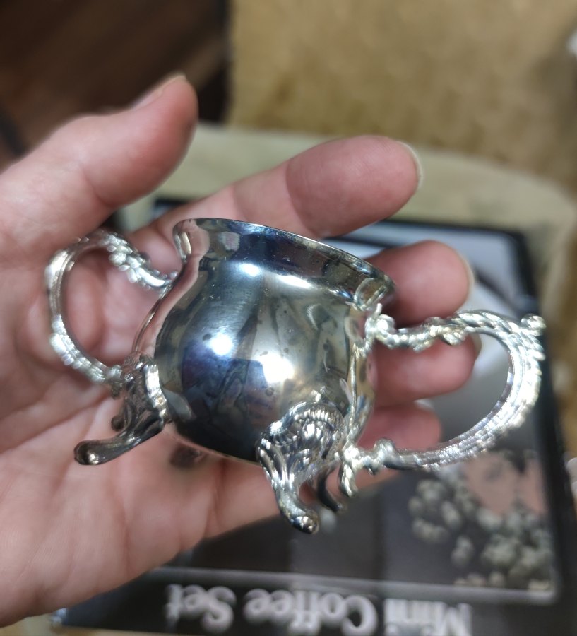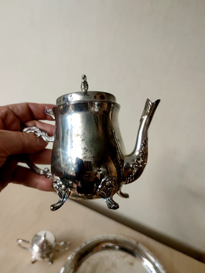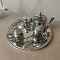| Краткое описание | Красивый, но с изъянами. про покрытие надо забыть или заново чем-то покрыть. материал - сплав и нержавейка, покрытие под серебро. Не магнитятся ручки и носик кофейника и сотейника пятна почерневшие местами, похожие на потемневшее серебро. не оттерлись. Думаю, покрытие вообще исчезло. Диаметр подноса 25см Высота кофейника - 14см. высота молочника - 5.5см высота сахарницы - 7см Коробка хорошая. |